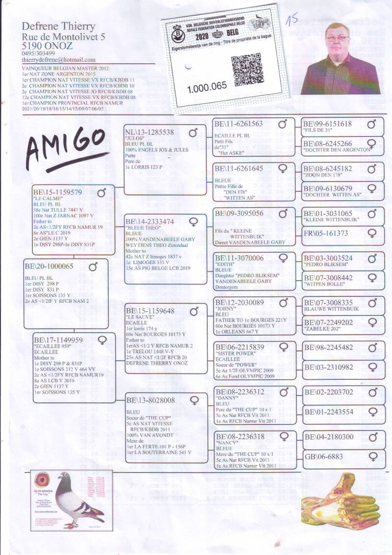 DUIVEN MET EEN GESCHIEDENIS . IN VOORKOMEND GEVAL HEEFT " AMIGO " EEN INDRUKWEKKENDE STAMBOOM . zIE HIERONDER .